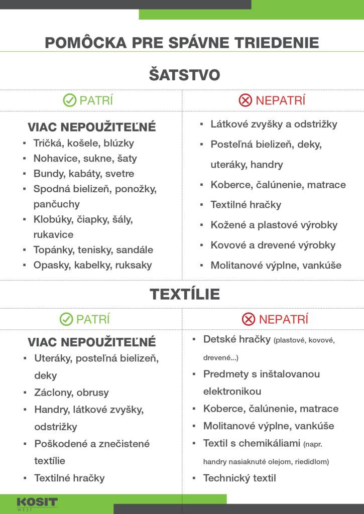 Textil a Šatstvo je potrebné zbierať oddelene vo vreciach